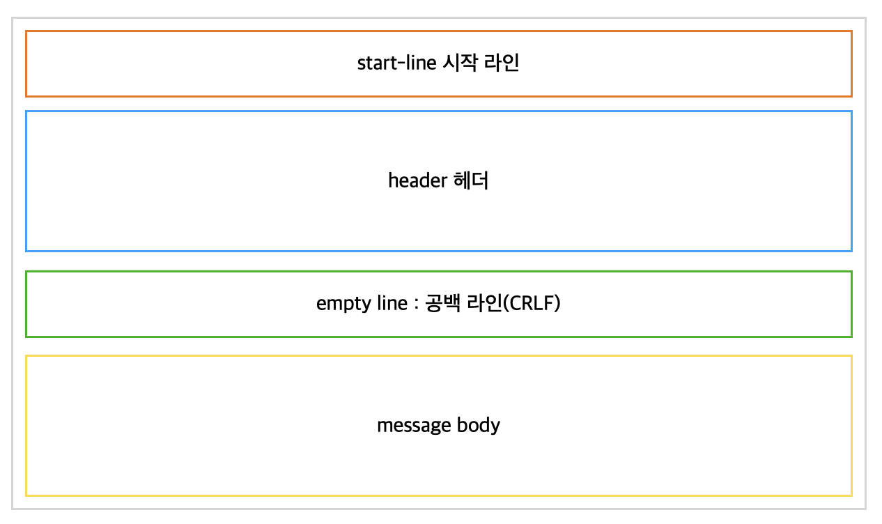 - start-line : request-line = method SP(공백) request-target SP HTTP-version CRLF(공백 라인)
