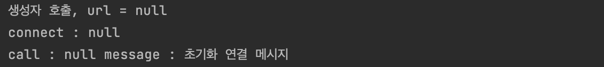 결과에서 보다시피 생성자를 보면 url 정보 없이 connect가 호출되고 있다. 객체를 생성할 때는 url이 없고 객체를 생성한 다음에 외부에서 수정자 주입을 통해 setUrl()이 호출되어야 url이 존재하게 된다.